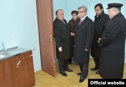 Армения - Президент Армении Серж Саргсян изучает недавно построенную квартиру в квартале Муш-2 г.Гюмри. 23 декабря 2010 г.