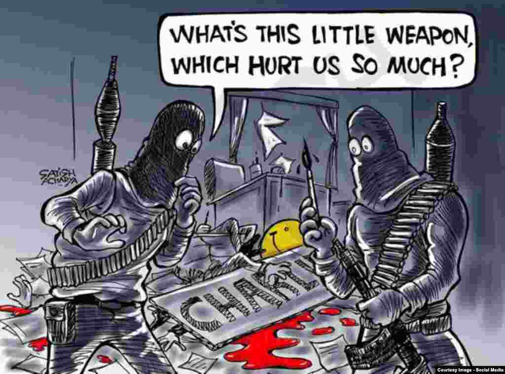 Политические карикатуристы со всего мира ответили рисунками террористам на убийство своих коллег-карикатуристов ​из французского журнала Charlie Hebdo.