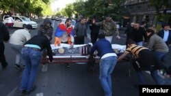 Утром в понедельник активисты также в течение десяти минут блокировали движение на станции «Площадь Республики» в ереванском метро.