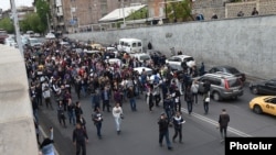 Сегодня с утра сотни активистов оппозиционного движения, выступающего против премьерства Сержа Саргсяна, разбившись на группы, вновь вышли на улицы Еревана с целью перекрытия движения транспорта.