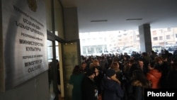 Участники акции протеста сообщили Радио Азатутюн, что накануне исполняющие обязанности министров им представили проекты, согласно которым оба министерства будут упразднены – Министерство культуры войдет в состав Министерства образования и науки, а Министерство диаспоры станет управлением в составе Министерства иностранных дел.