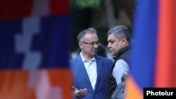 Руководитель оппозиционной парламентской фракции «Честь имею» Артур Ванецян на площади Свободы в Ереване, 18 апреля 2022 г.