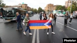 Серьезных пробок в Ереване нет, участники акции действуют по одному и тому же принципу: перекрывают улицы на несколько минут, пытаясь парализовать движение, за этими шагами протестующих следуют действия полиции.